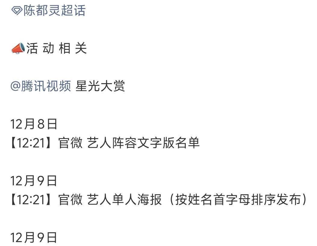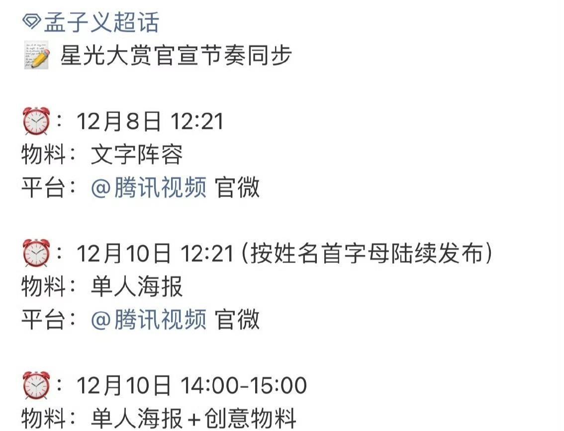 白鹿、孟子义、陈都灵、龚俊、丞磊白鹿、孟子义、陈都灵、龚俊都已官宣出席“星光大赏”盛典活动。不知今年哪些大花出席,如今行程官宣的基本上是一些小花、小生与流量演员。还得看最终的官宣人员名单,如果那些实力派演员不去,可能也没有什么看点,期待一下吧!